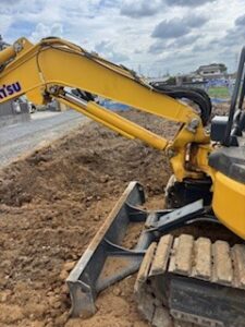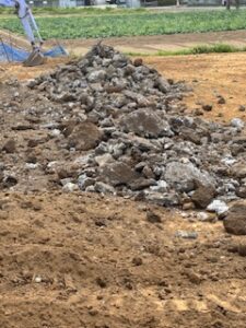 昨日に発覚したアスファルト問題!この緊急事態を打破すべく本日も粛々とアスファルト剥がしに勤しみます。しかし、本日午後から雨天予報が・・・ この土地は赤土なので、雨が降ったら重機脱出不可能状態になりそうなので、雨が降る前に何とかアスファルトを剥がし終えないと・・・って代表が言ってました。