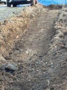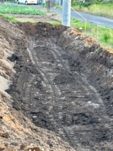 アスファルト剥がしを終え、U字側溝とコンクリートガラを処理場に全て排出できました。残りは、新たなU字側溝設置のための溝を掘って均す作業ですが、昨日の雨の影響で重機が思った以上に沈み、更に粘土も所々あり、すんなりと均等になってくれず、代表からは「ザッと均す程度でいいよ」と神の声が!で、まずはザッとですが均す程度にしました。(まー私は重機の扱いが下手くそなので、見かねた代表があきらめたのか・・・)。 残りはあと少し頑張りたいと思います。